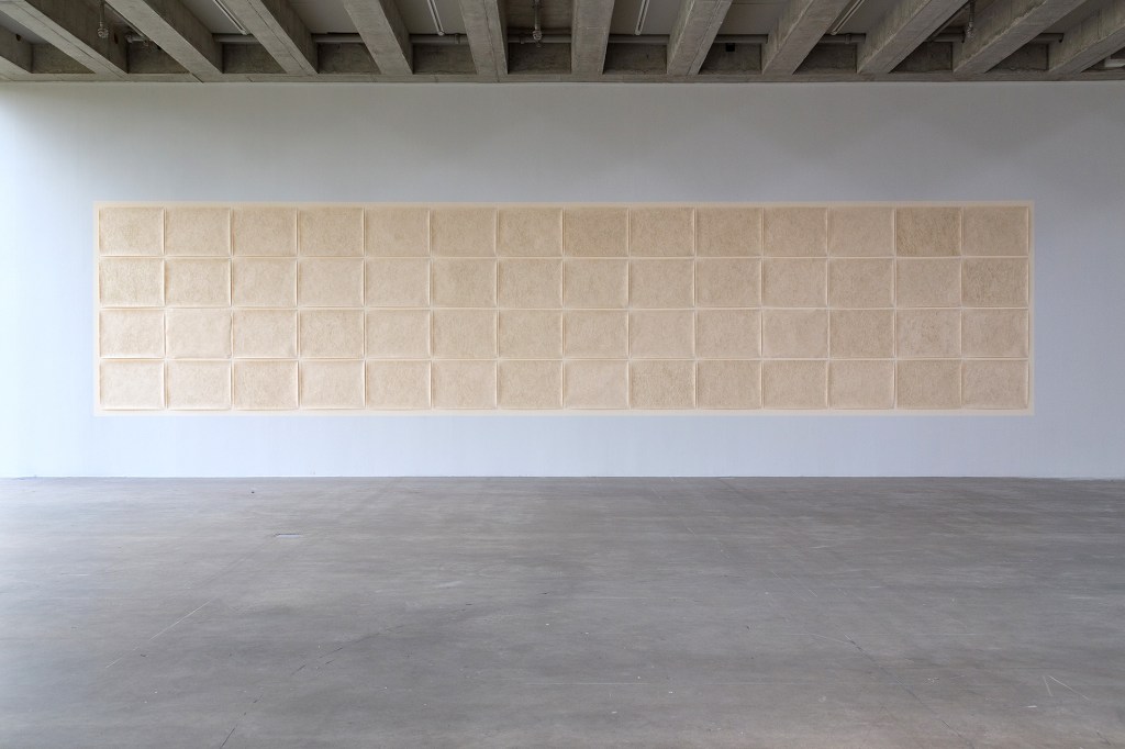 56 drawings. Each drawing measures 62.5 × 48 cm. The entire work measures 9.17 × 2.10 meters, including the painted surface. 2025